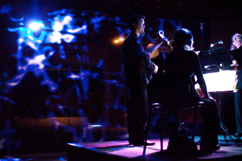 After Molly Sturges and I got the United States Artist Award in 2008, I wanted to use the opportunity to reach out to one of my all-time favorite new music string quartets—the Del Sol String Quartet—to see if they would be interested in a collaboration, building a multi-media immersive evening-long live performance, exploring the marvelous and subjective domain of darkness and nighttime. Together, we built the first of what became a trilogy of live music and video pieces called GARDEN.
